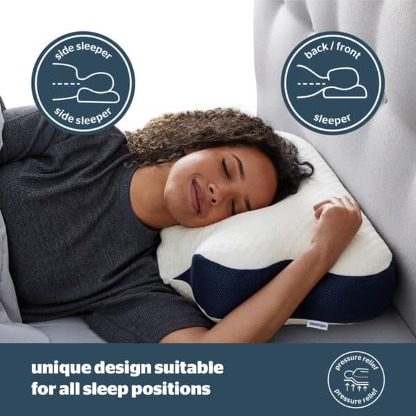 - ERGONOMIC DESIGN: The neck slope prevents your head from rolling out of a stable position whilst arm contours help you to find a more comfortable position for improved spinal alignment.