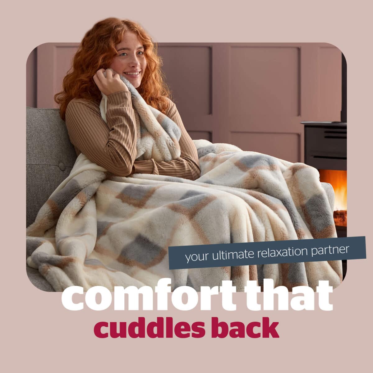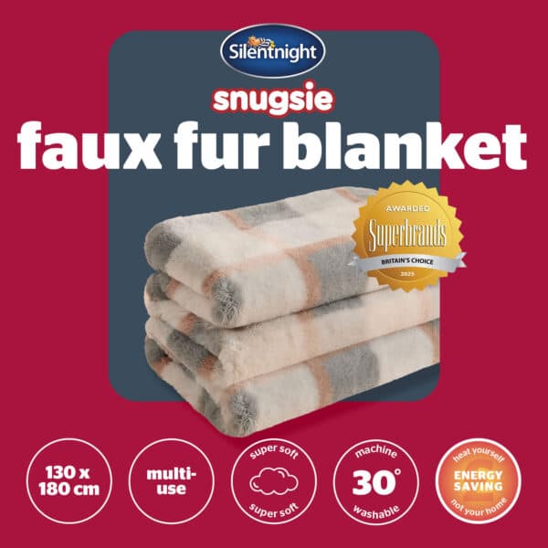 Silentnight Snugsie Faux Fur Checked Blanket