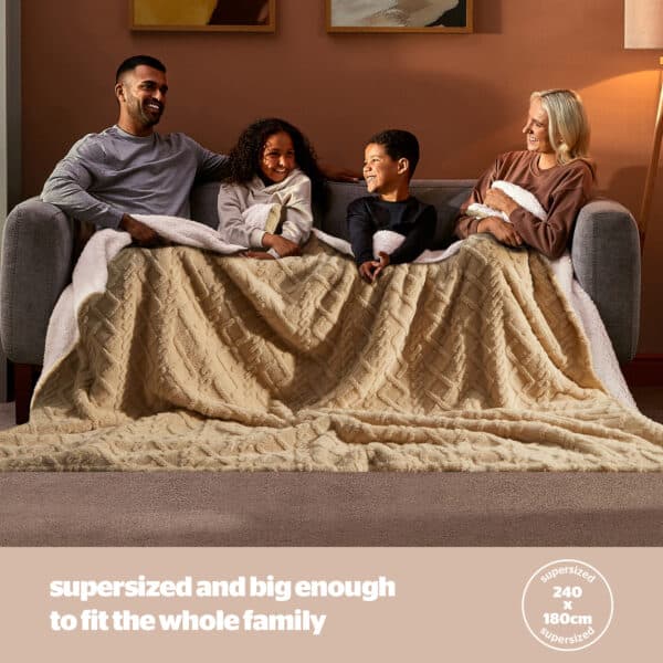 The Silentnight Super Cosy Giant Blanket is the ultimate snuggly winter accessory for your home. Sumptuously soft, cuddly comfort to keep you warm and cosy as you relax and big enough to fit the whole family. The blanket is super-sized for ultimate comfort, measuring 180 x 240cm which is bigger than a king size bed and features a cosy and stylish knit pattern to give any room that warming winter feel.