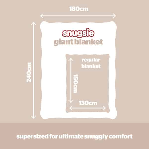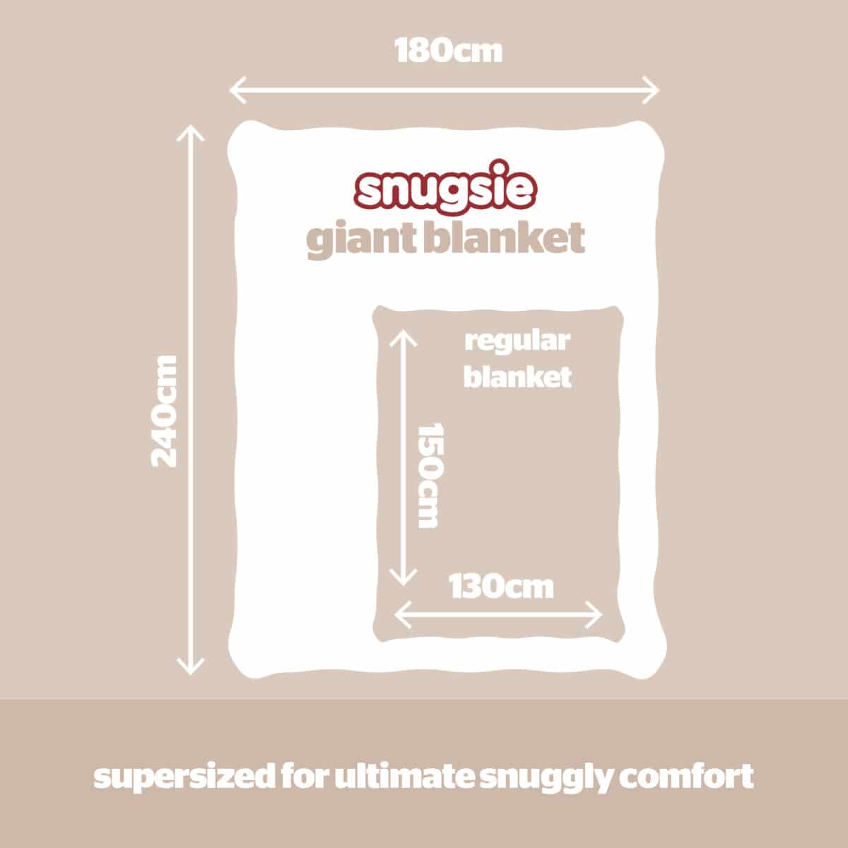 - SUPER-SIZED: The Snugsie Giant Blanket is 180 x 240cm! It's big enough to fit the whole family or just shroud yourself in ultimate snuggly comfort.