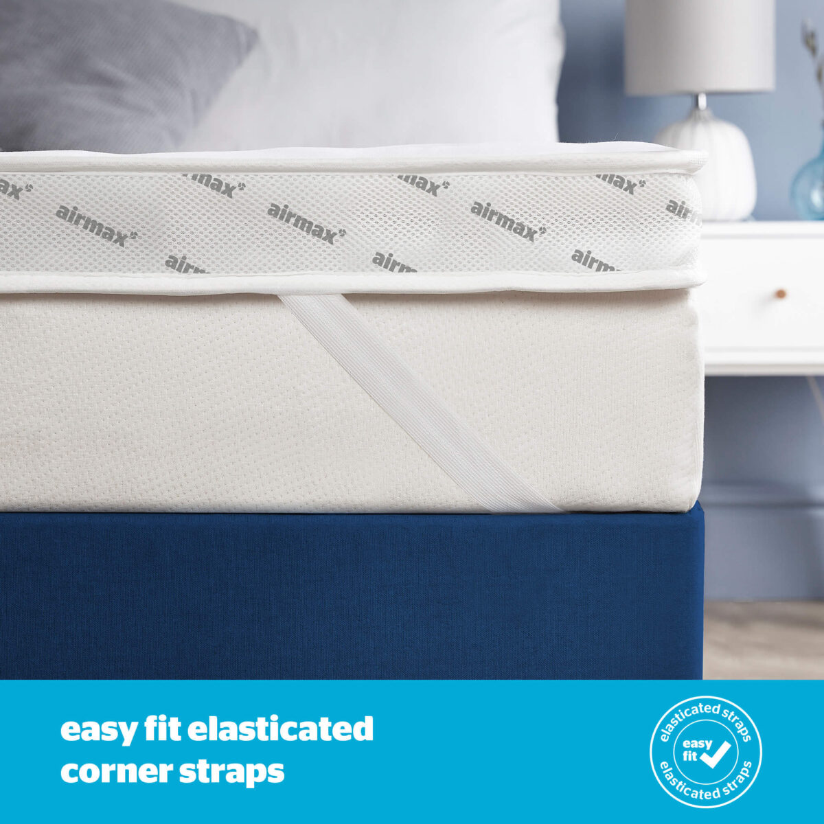 The Silentnight Airmax range is specially designed to increase airflow and circulation. Featuring air mesh sides, the pillows, duvet and mattress topper help air move freely around your body and head to prevent overheating and keep you comfortable in every season. The 10.5 tog duvet is ideal to use all year round whilst the topper is deeply filled with hollowfibre, the 8cm dual layer construction also provides ultimate comfort and will help to refresh and rejuvenate any mattress.