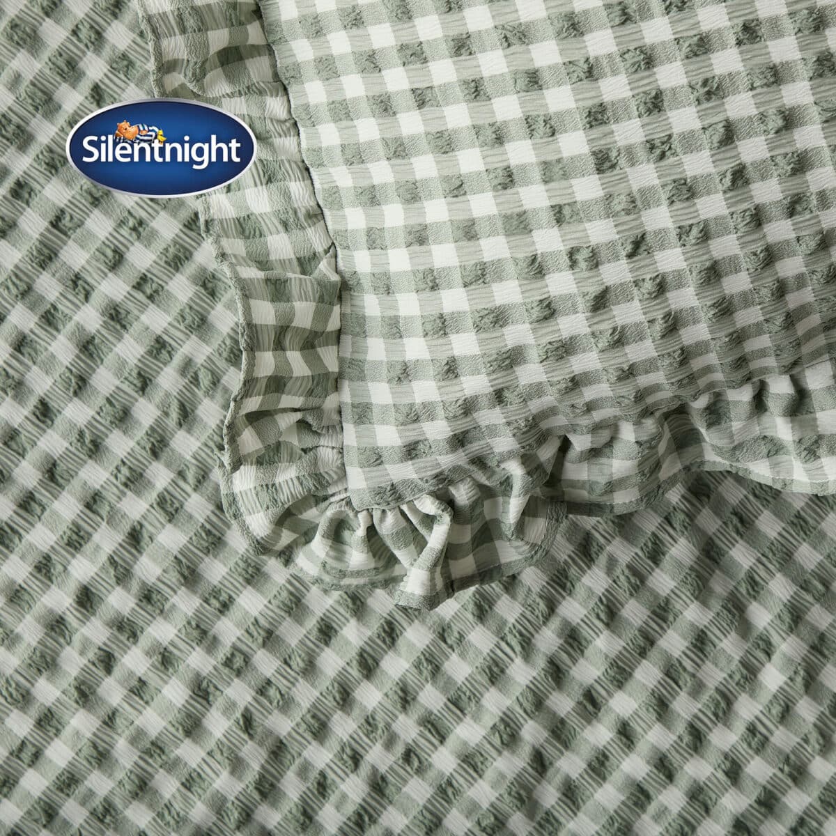 Silentnight Supersoft Duvet Set, Gingham Ruffle – Sage