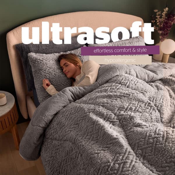 - SNUGGLY TEDDY FLEECE: Snuggle into an ultra-soft cocoon of cosiness. Hypoallergenic and kind to skin.