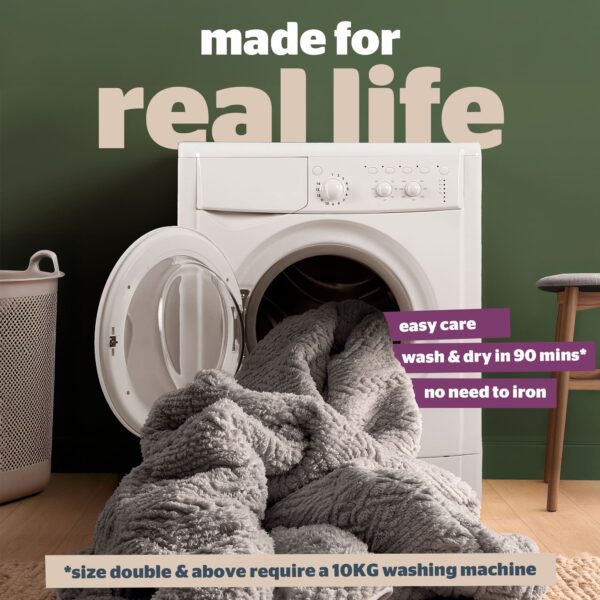 - EASY CARE: Machine washable and dries within 90 minutes to have it ready to use again at bedtime. Note for home washing, Double, King and Super King sizes require a large capacity washing machine (10kg). Kind to skin and does not contain any contents likely to cause allergies.