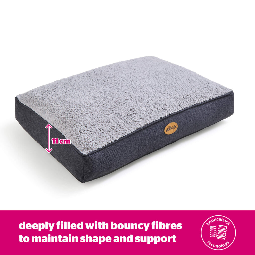 Filled with signature soft and springy fibres that rebound night after night to keep the bed feeling plump, cosy, and comfortable for longer. Featuring a super soft and cosy sherpa top, so your pet can enjoy a wonderfully comfortable snooze.
