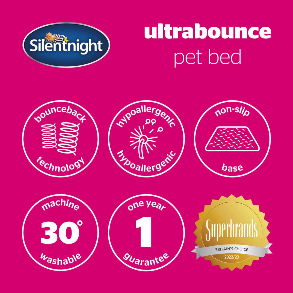 Silentnight pet beds have been lovingly created with the very same technology used in our human products! The Ultrabounce pet bed is filled with signature soft and springy fibres that rebound nap after nap to keep the bed feeling plump, cosy and comfortable for longer. Made with a durable yet soft woven cover and topped with soft and cosy sherpa for ultimate comfort.