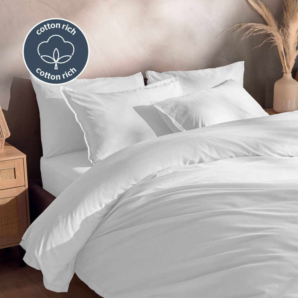 Crafted with a blend of natural washed cotton and polyester combining luxurious softness & easy-care properties. Delivering a stylish linen-look that keeps you comfortable throughout the night.