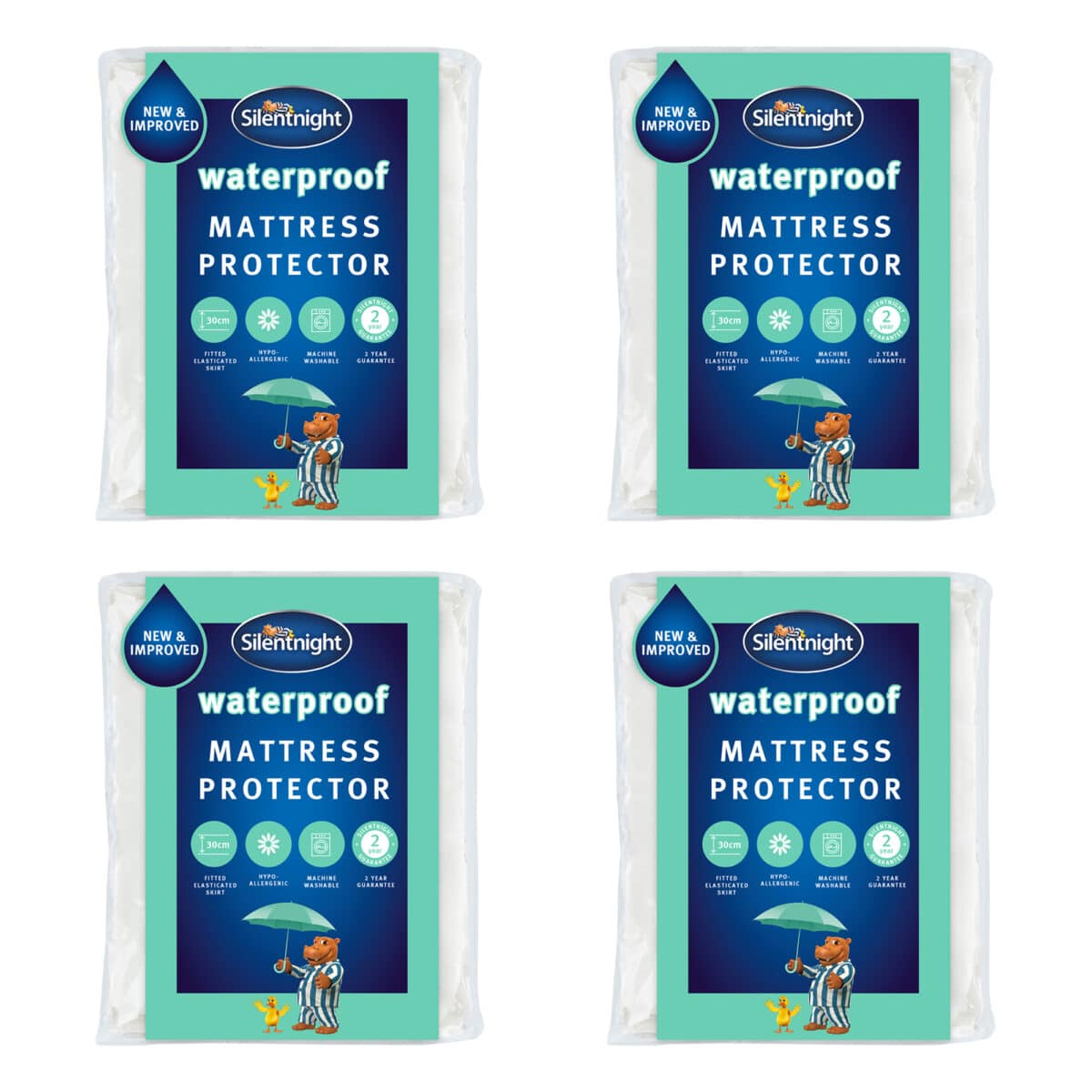 Bundle includes a 2,3 or 4 pack of Silentnight Waterproof Mattress Protectors. Each protector helps to shield your mattress against spillages, accidents and stains. Complete with a fitted skirt for extra protection and a secure fit, this protectors wrap around the sides of your mattress to cover your mattress entirely. Crafted with a soft touch microfibre surface with a waterproof polypropylene backing for 100% protection. Unlike other waterproof mattress protectors, these protectors does not rustle.