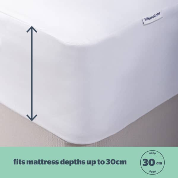 The Silentnight Waterproof Mattress Protector helps to shield your mattress against spillages, accidents and stains. Complete with a fitted skirt for extra protection and a secure fit, this protector wraps around the sides of your mattress to cover your mattress entirely.