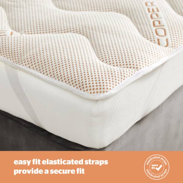 The soft-touch copper infused topper is naturally anti-bacterial and the topper is deeply filled with anti-bacterial fibres that actively protect against bacteria and dust-mites for ultimate freshness. Copper is also widely praised for its positive health benefits and believed by many to help relieve joint pain and improve circulation. Our copper content is approximately 3 times the content of alternative copper toppers on the market.