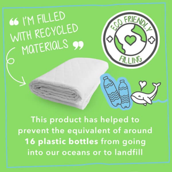 - ECO FRIENDLY: This product is filled with 100% recycled content and each mattress protector has helped to prevent 16 plastic bottles from going into our oceans or landfill.