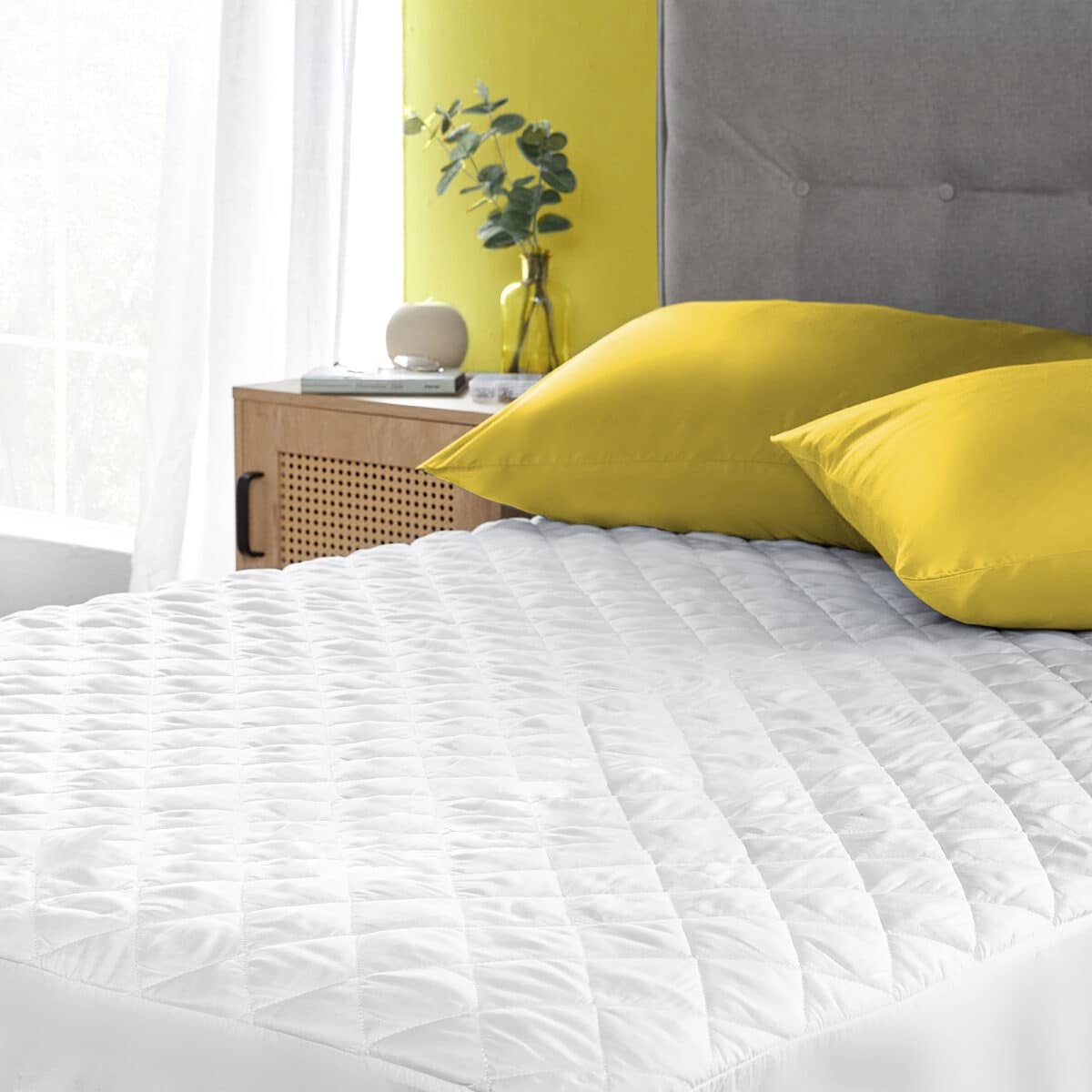 The protector features a 25cm extra deep fitted skirt hugs your mattress snugly, for seamless protection.