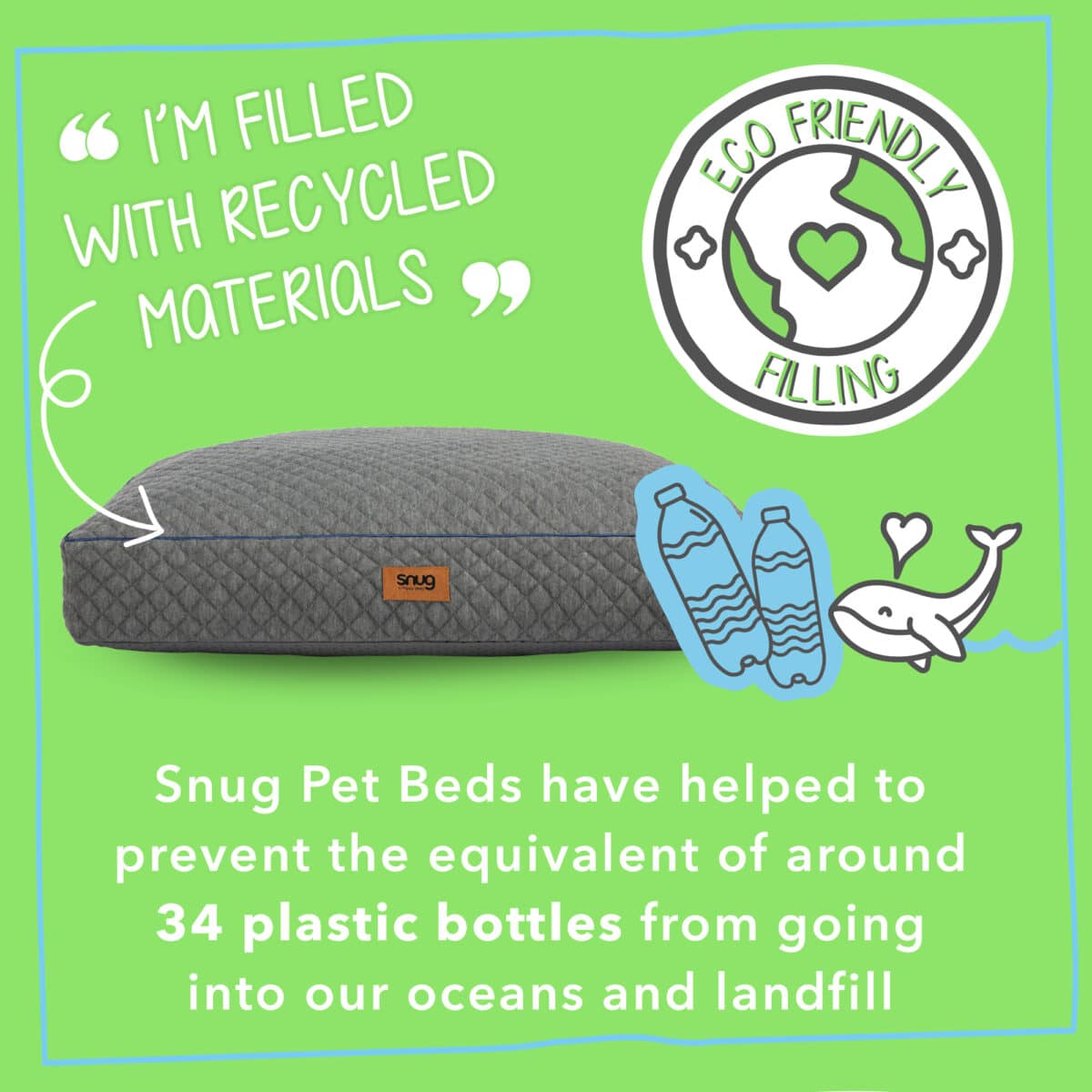 - ECO FRIENDLY: Snug Pet Beds are filled with 100% recycled eco fibres and have helped to prevent up to 86 plastic bottles going into the oceans or landfill.
