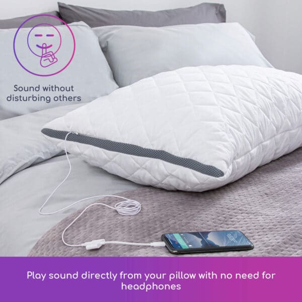 - NO NEED FOR HEADPHONES: An undetectable built in speaker plays sound directly from your pillow with no need for headphones, and without disturbing those around you. Simply plug your phone into the speaker pillow adapter and relax, listening to your favourite sounds in supreme comfort