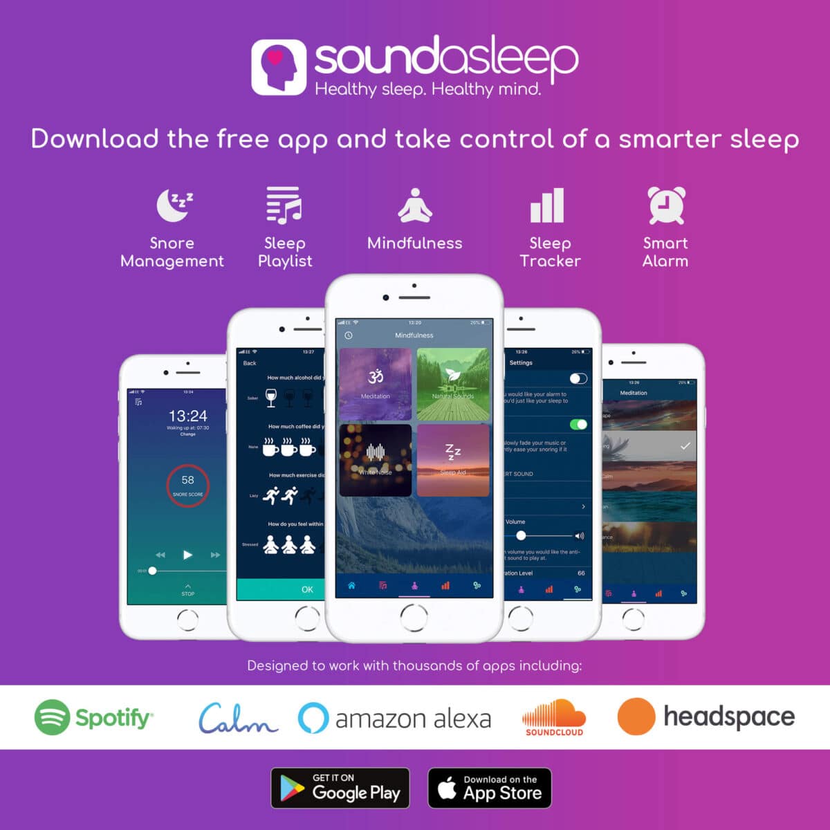 - RELAX AND UNWIND: Try your favourite apps, music, podcasts and audiobooks from the comfort of your pillow. Our easy to use Soundasleep app also includes a range of guided meditation sessions to help you fall into a relaxed sleep* (*note the Soundasleep app is only available on Apple Store)