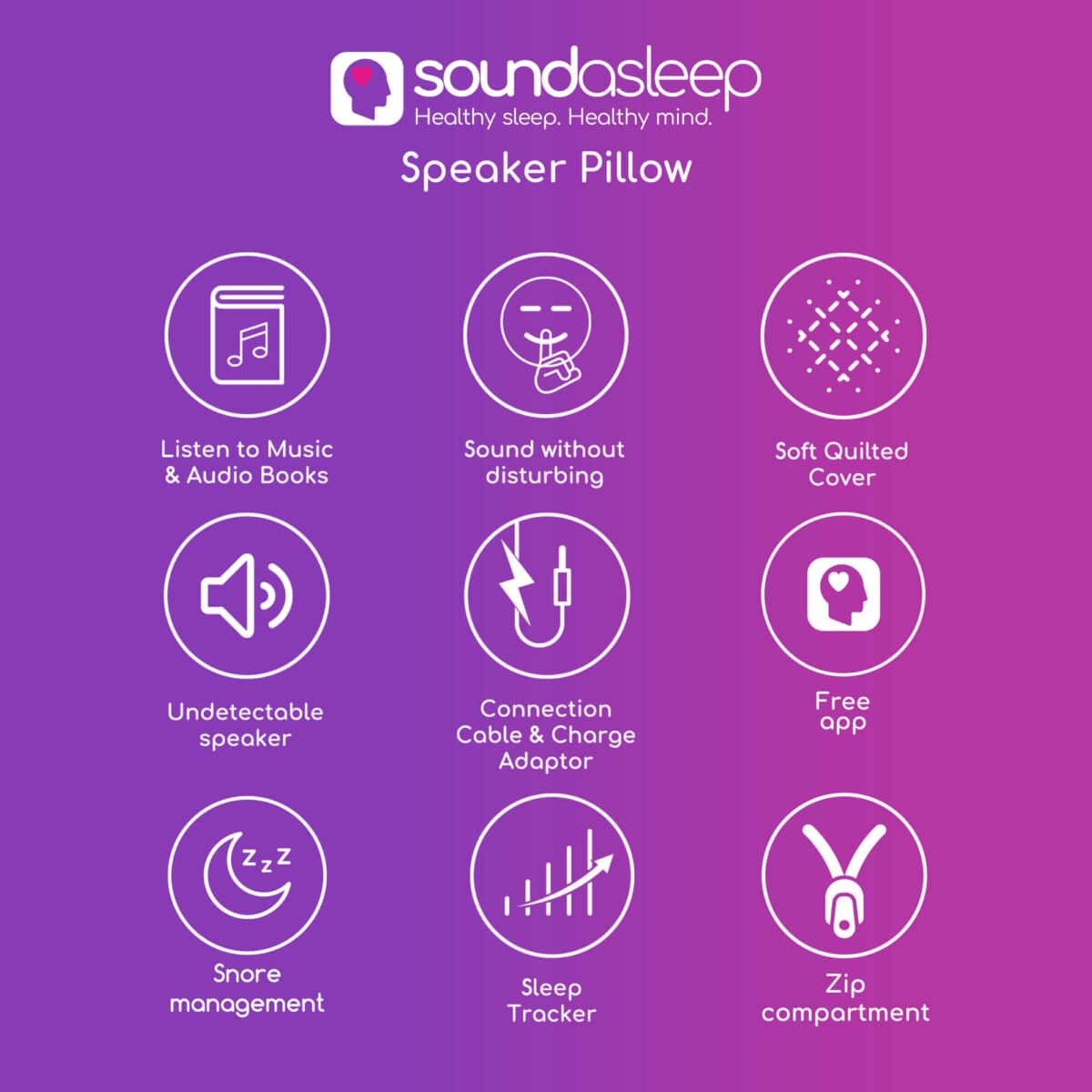 - SOUNDASLEEP: A revolutionary way to unwind! Our unique speaker pillow has been designed for better sleep and relaxation through the power of sound and technology